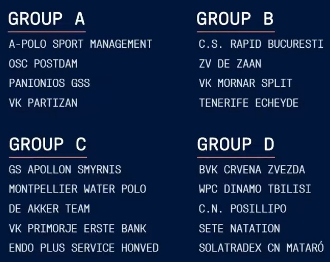 Deset klubova plasiralo iz prvoga kruga kvalifikacija: Posillipo, De Akker Team, Endo Plus Service Honved, Beograd, Solartradex Mataro, Tenerife Echeyde, Panionios GSS, Primorje Erste Bank, Mornar Split i Sete Natation.