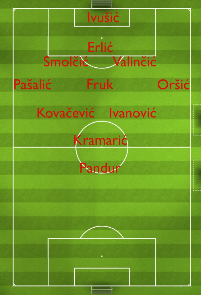 Klasični napadači Kovačević i Ivanović u središnjem rombu pokrivaju bokove, Kramarić je na vrhu romba.