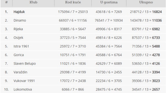 Rijeka ova sezone ima prosjek od 5647 gledatelja na Rujevici po čemu je četvrta u HNL-u.