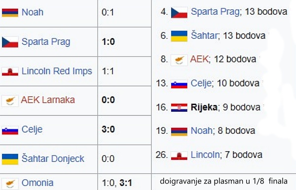 Ispadanjem u play-offu Europske lige, Rijeka se prvi put plasirala Konferencijsku ligu.